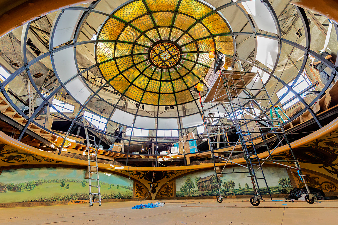 Drone shots close up Logan County Courthouse